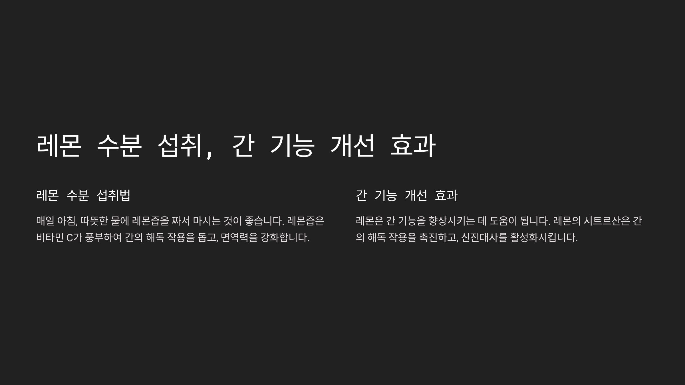 그렇다면 레몬수를 어떻게 마셔야 최대한 효과적으로 간 건강을 지킬 수 있을까요? 어떤 시간대에 마시는 것이 가장 좋으며, 주의해야 할 점은 무엇일까요? 이번 글에서는 레몬수를 마시는 방법과 간 건강에 미치는 다양한 효과에 대해 자세히 알아보겠습니다.