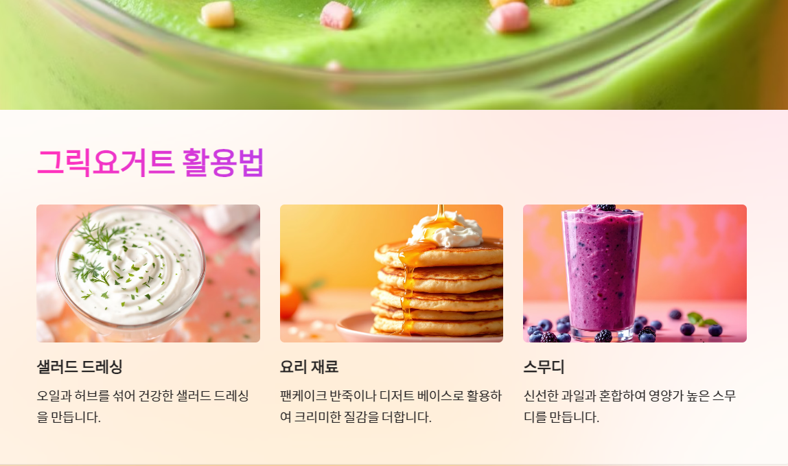 또한, 그릭요거트는 체중 관리와 소화를 돕는 효능이 있어 건강을 유지하려는 사람들에게 인기 있는 선택입니다. 아래에서 그릭요거트의 다양한 장점과 활용 방법에 대해 알아보겠습니다.