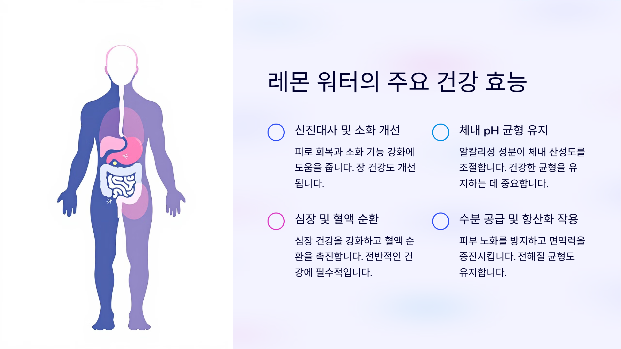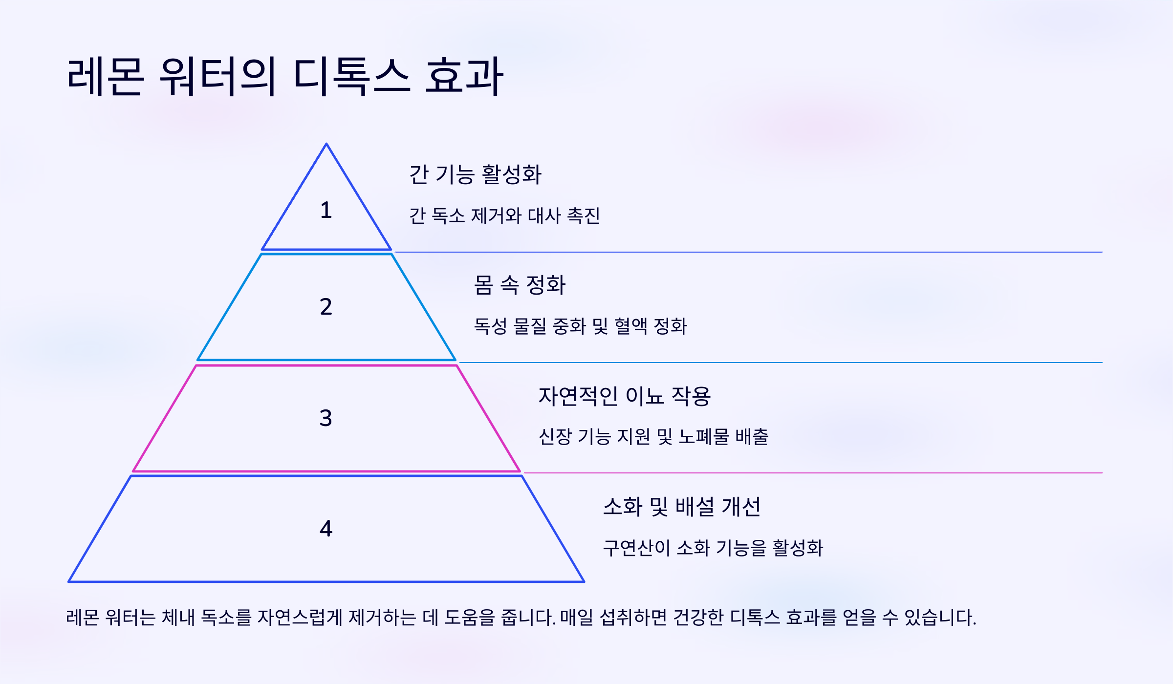 레몬 워터는 간 기능을 활성화하여 몸 속 독소를 제거하는 데 도움을 줍니다.