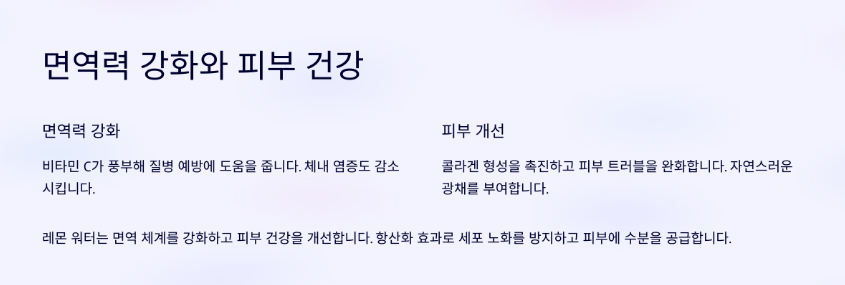 레몬에 포함된 비타민 C는 면역 체계를 강화하는 핵심 성분입니다.