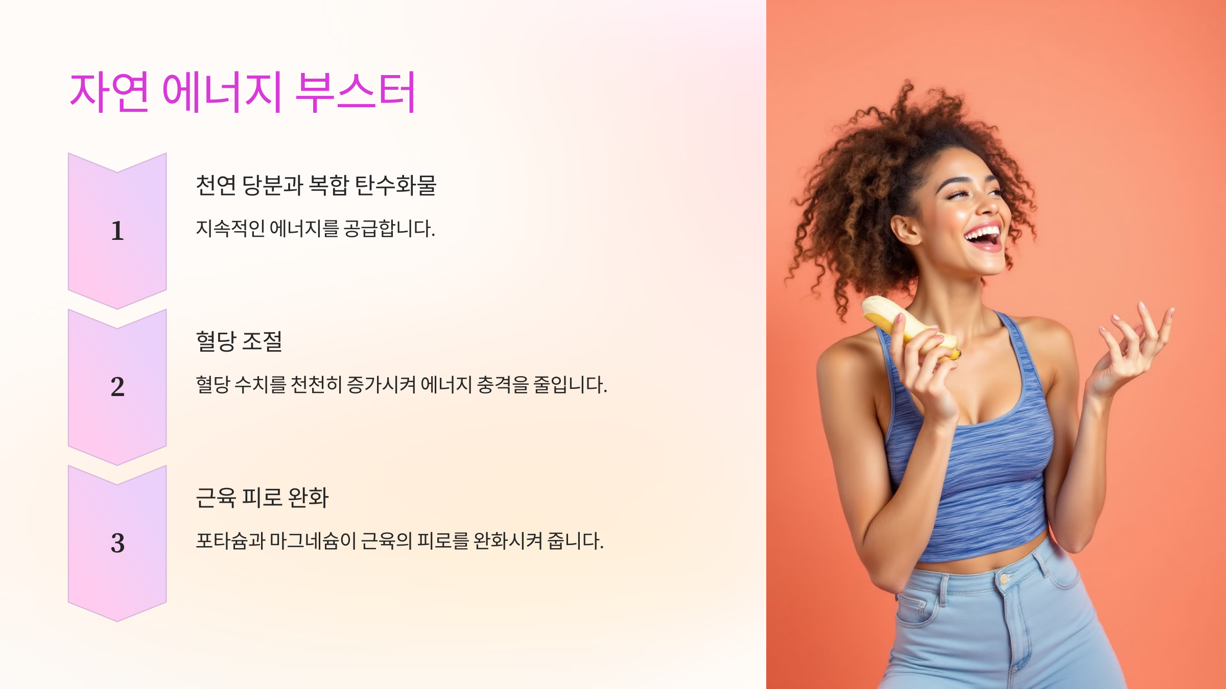 바나나는 빠르게 에너지를 공급해 운동 후 간식으로도 이상적입니다.