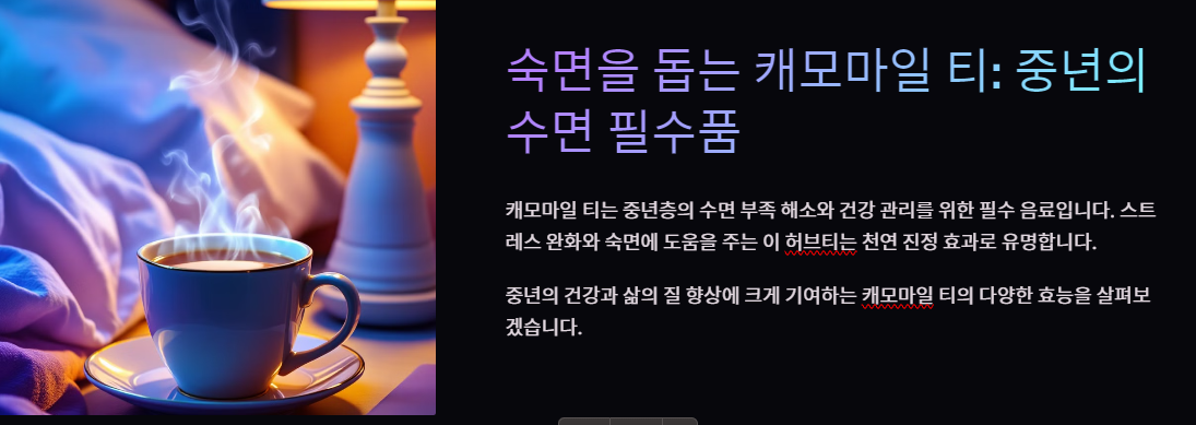 수면 전 캐모마일 티 한 잔은 건강한 라이프스타일에 필수적인 요소입니다.