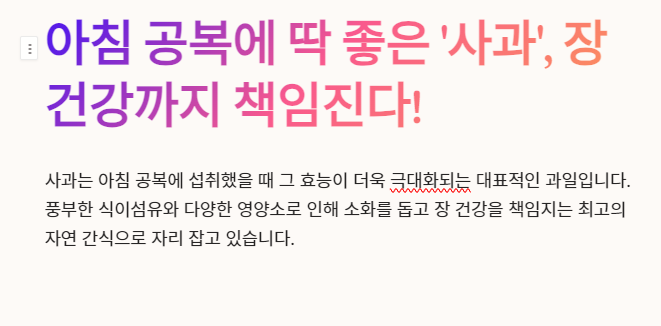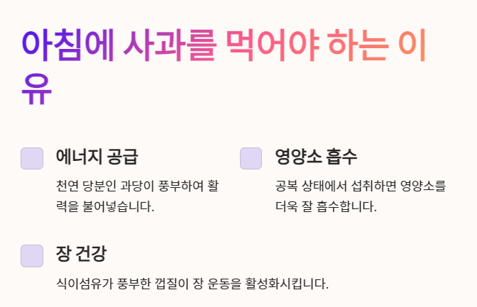 사과는 매일 섭취할 때 건강 유지에 큰 기여를 합니다.