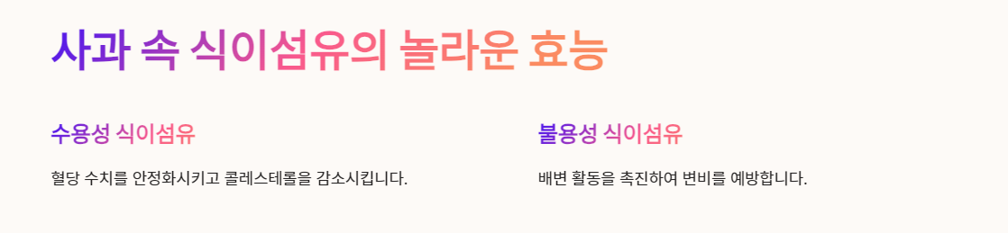따라서, 사과를 통한 섬유질 섭취는 건강 전반에 걸쳐 큰 이점을 제공합니다.