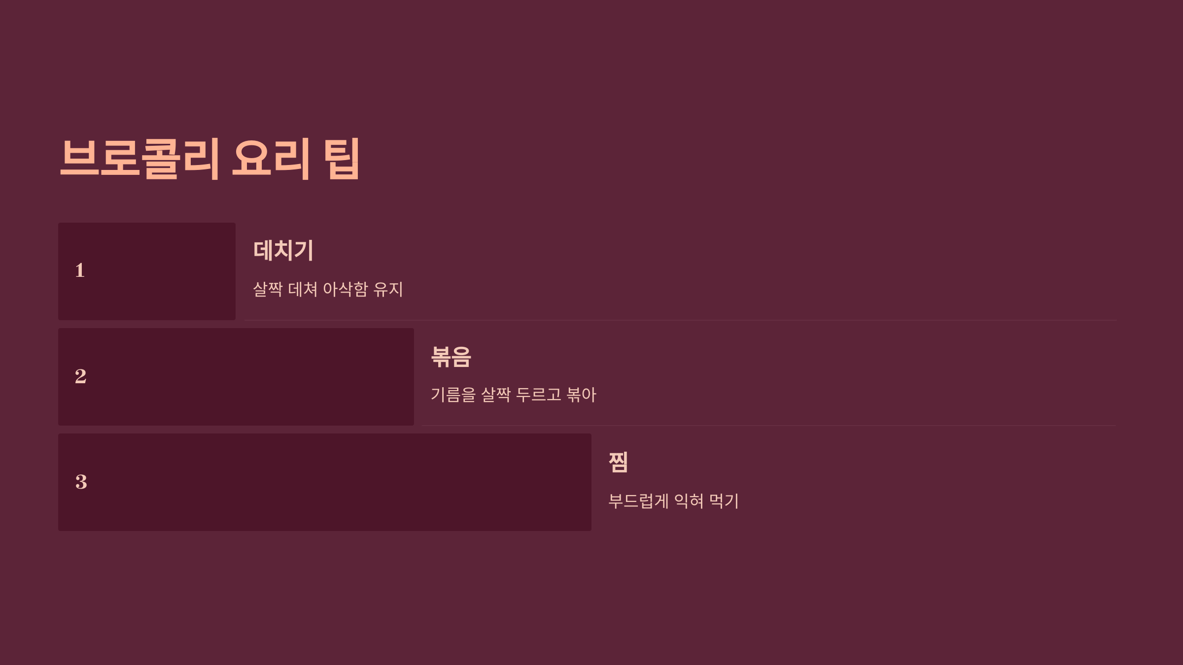 브로콜리를 더 맛있고 건강하게 즐기기 위해 몇 가지 요리 팁을 소개할게요! 적절한 조리 방법을 사용하면 영양소를 최대한 보존하면서도 맛있게 먹을 수 있어요.