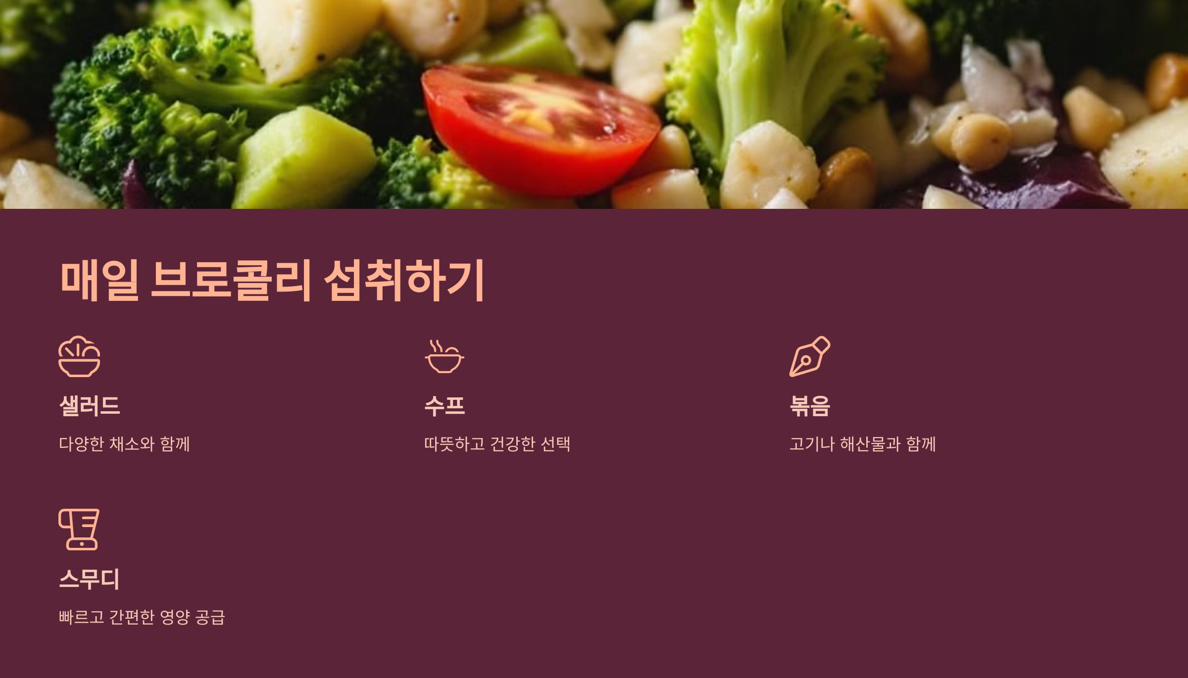 브로콜리를 매일 섭취하려면 다양한 방법으로 조리하는 것이 중요해요. 매일 같은 방식으로 먹으면 쉽게 질리기 마련이니까요!