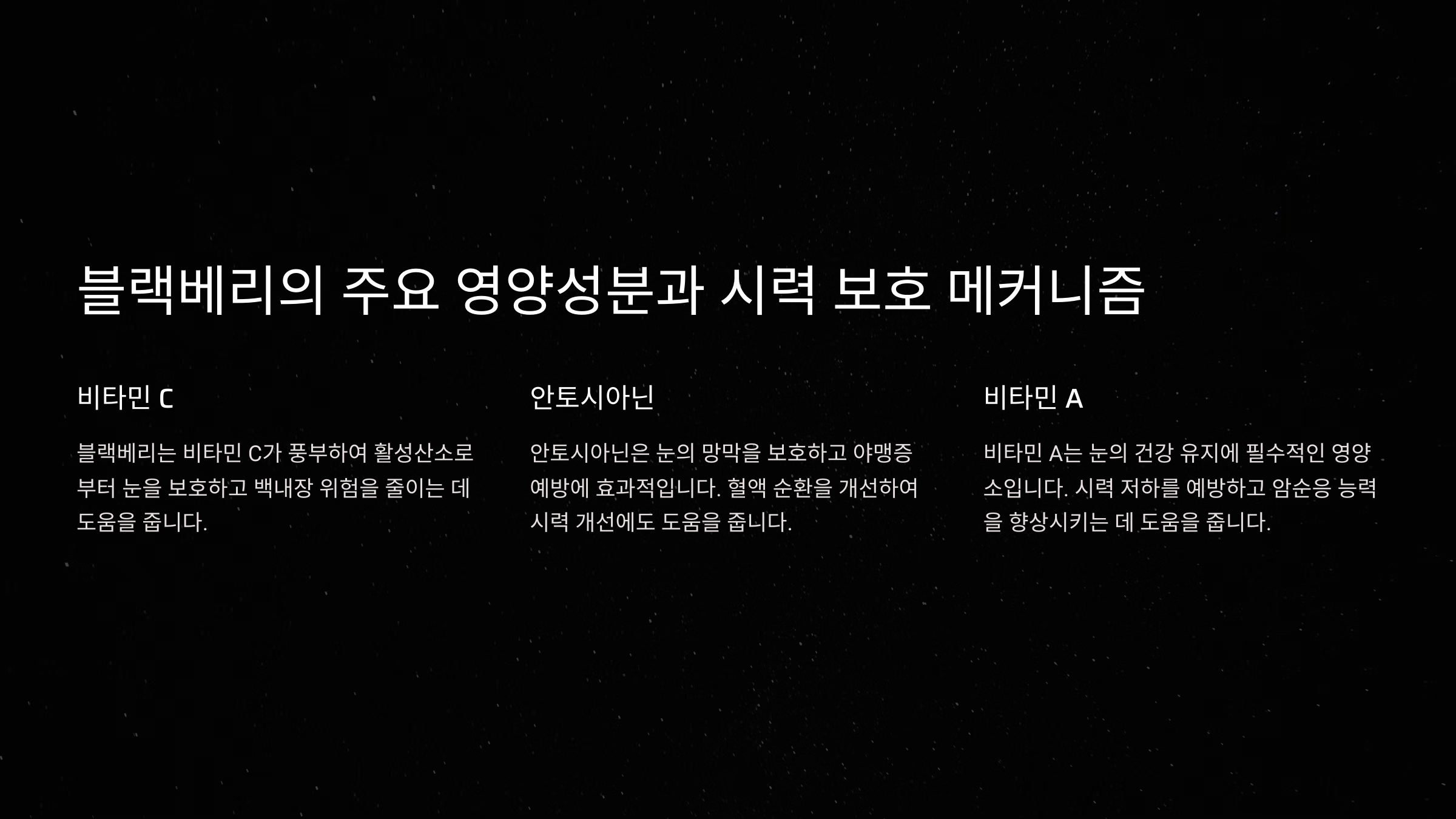 루테인과 제아잔틴은 눈의 황반을 보호하고 자외선으로 인한 손상을 줄이는 데 큰 도움을 줘요. 특히 장시간 스마트폰이나 컴퓨터를 사용하는 현대인들에게는 블랙베리가 디지털 기기로 인한 눈 피로를 완화하는 데 효과적이에요.